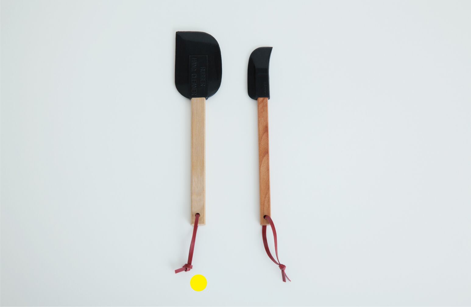 大きなゴムヘラも小さなゴムヘラも耐熱、汚れの目立ちにくい黒。